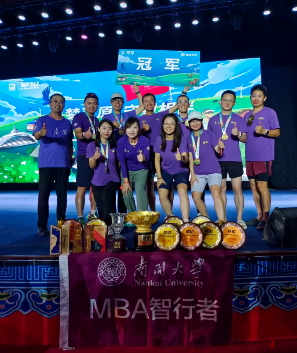 格根塔拉草原的风,吹散了赛场的紧张,却带不走南开MBA用脚步写下的荣耀。征途中的烈日与暴雨见证“同心者同路”的担当,领奖台的荣光映照着“行者无疆”的豪情,夜空下的畅谈延续着“允公允能”的薪火。这是一场竞技的胜利,是南开精神在草原上的绽放,是2023级MBA毕业季里滚烫的印记。