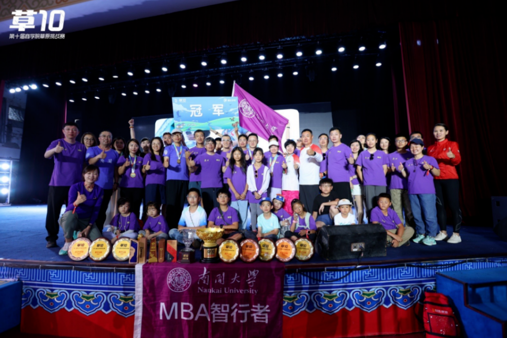 格根塔拉草原上,南开大学商学院MBA代表队凭热血与坚韧创下佳绩。面对全国顶尖对手,他们一举斩获“团体冠军”、“草原王者奖”等八项大奖,不仅拿下南开大学商学院在全国商学院越野徒步类赛事的首个冠军,更让“南开紫”成为草原上最亮眼的颜色。